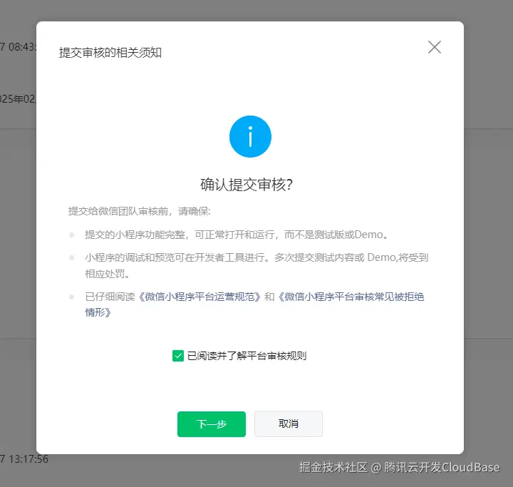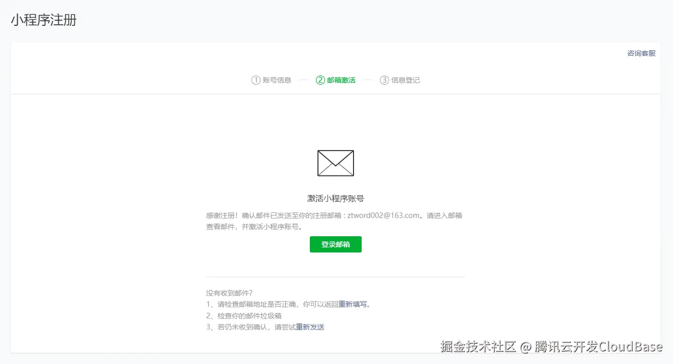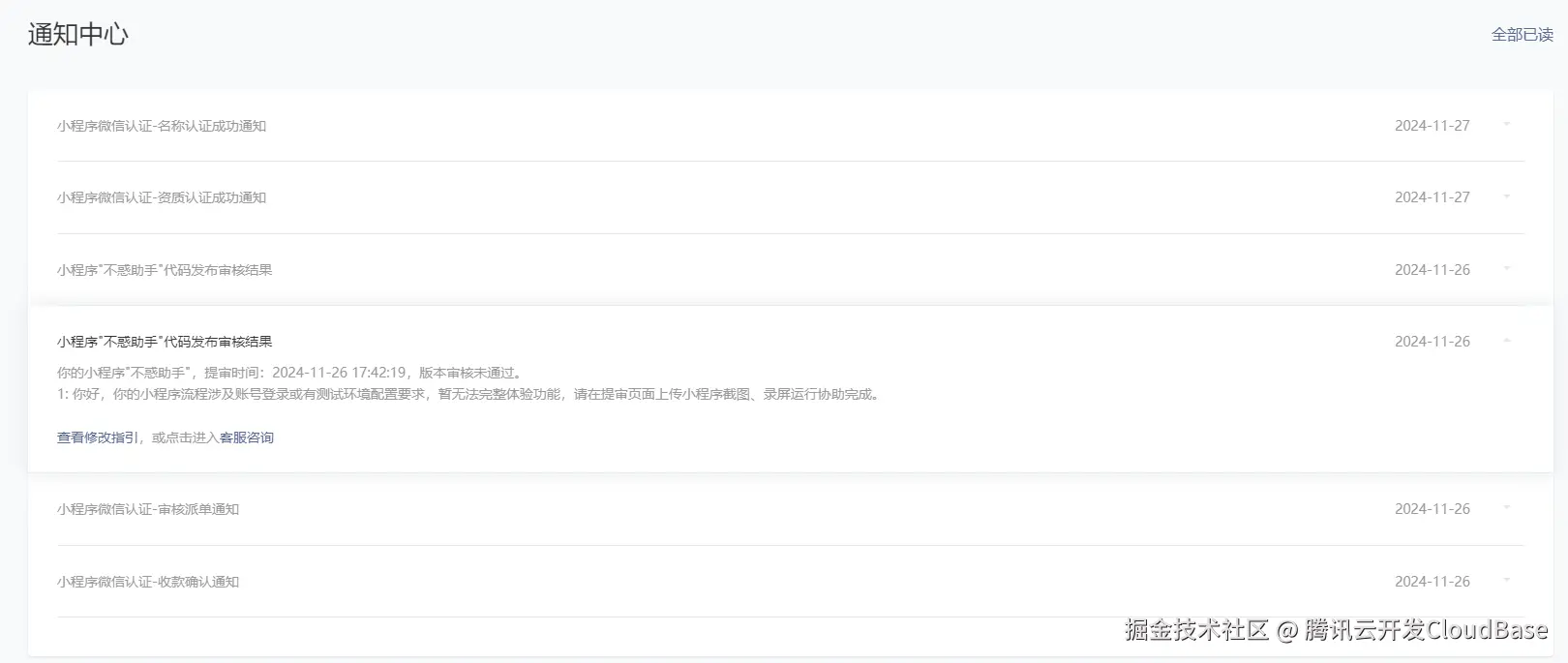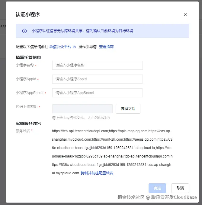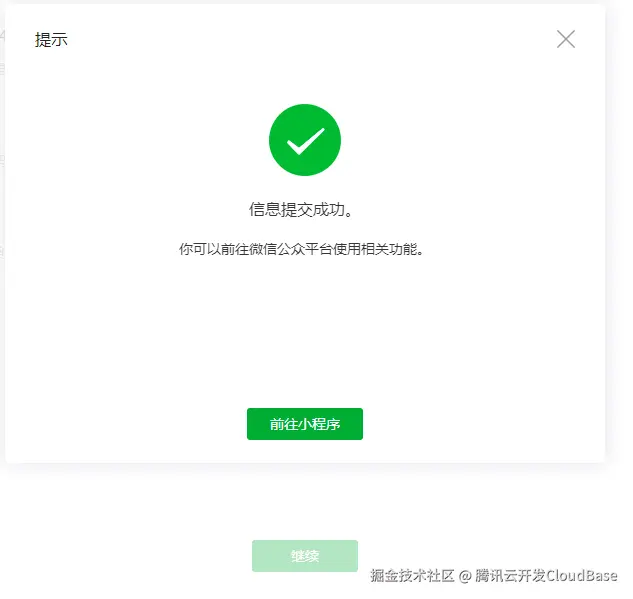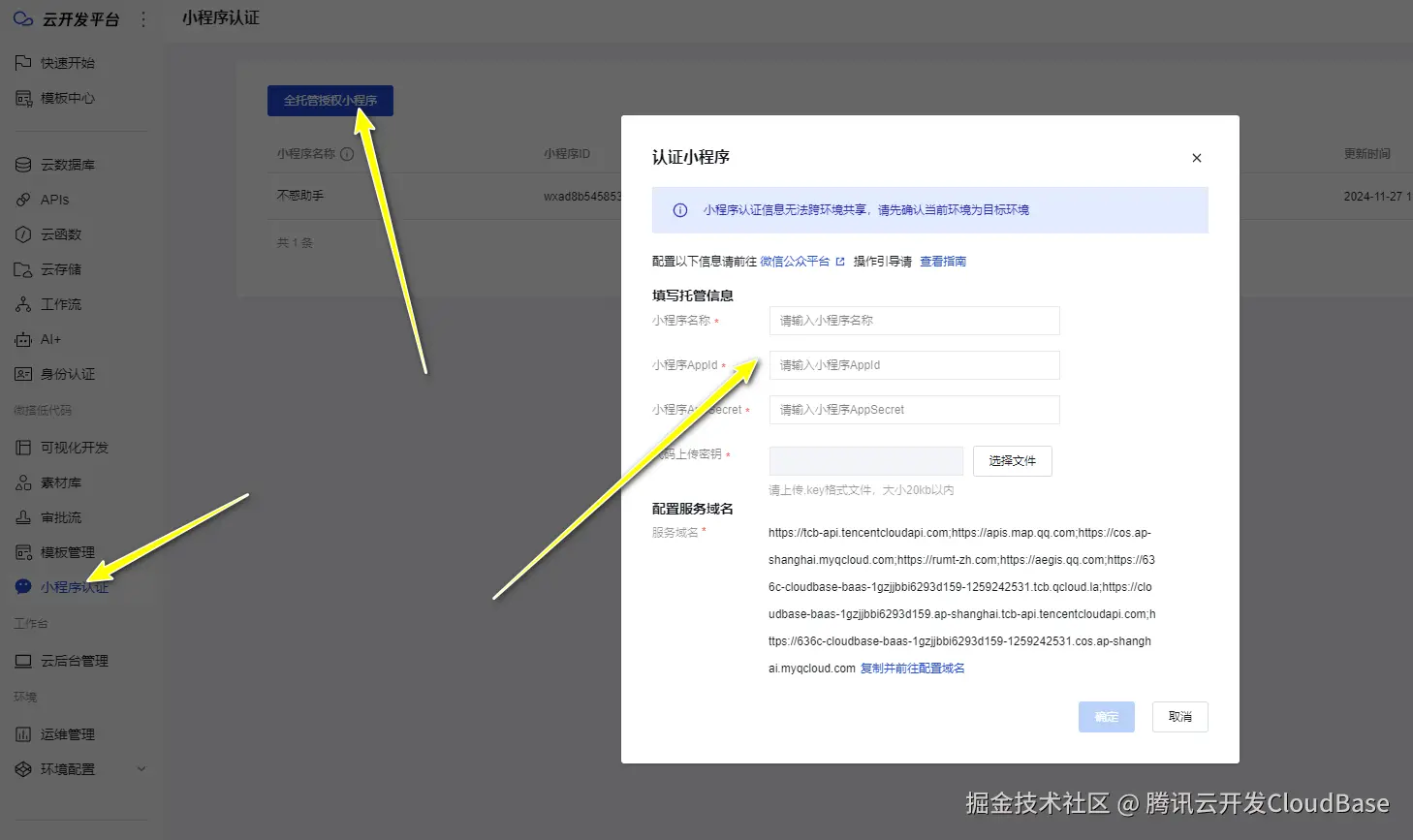 接下来,我们再次回到云开发平台;我们在回到平台的小程序认证页面,进行小程序绑定;