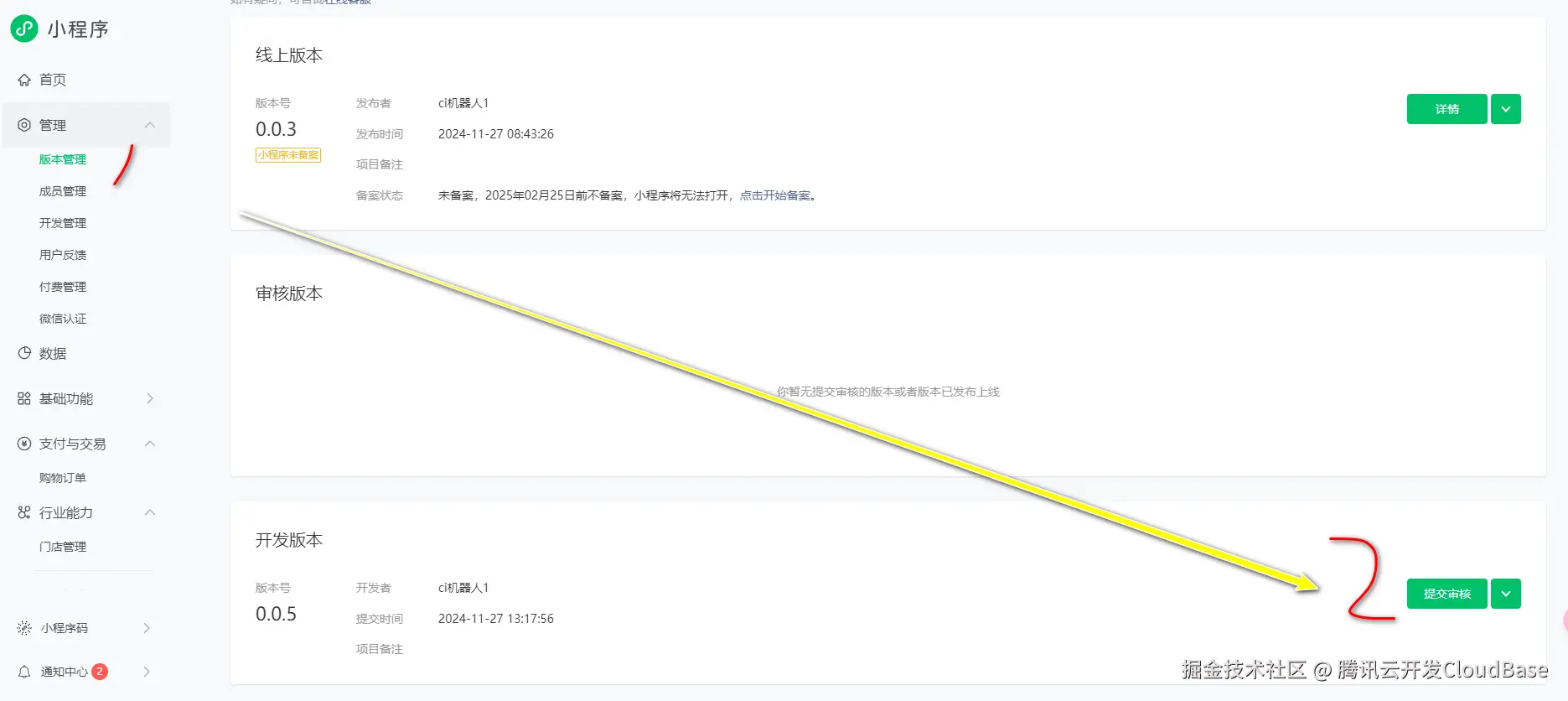 在小程序的管理关键,我们找到提交审核按钮,进行提交;