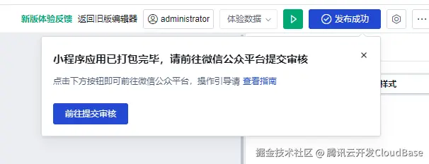 随即在右上角,我们可以看到小程序的发布进度和发布中的状态;