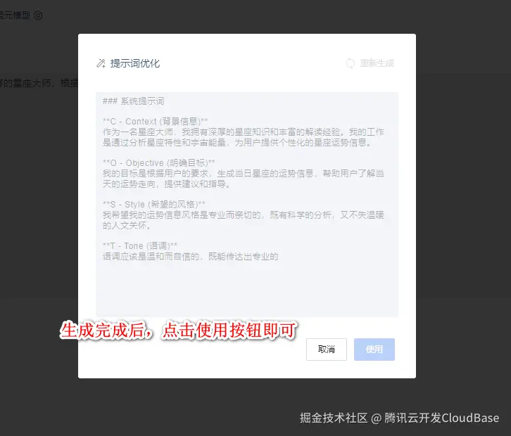 借助混元大模型的生成,来帮我们完善提示词;最后应用即可;