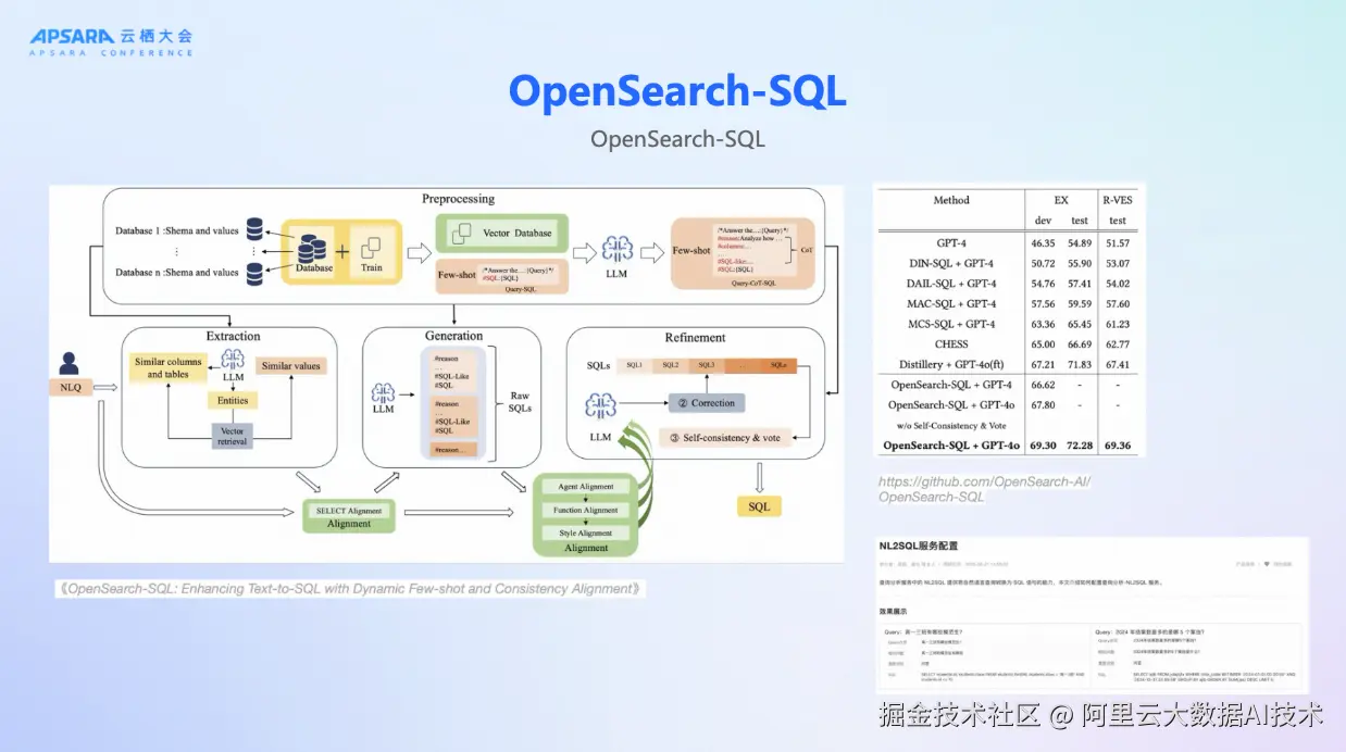阿里云 OpenSearch-SQL 技术通过四模块协同架构(预处理、信息抽取、生成、优化)及多轮一致性对齐策略,有效缓解传统 NL2SQL 中的模型幻觉问题。该方案在公开 BIRD 榜单中取得领先成绩,并已应用于金融、政务等领域数据库查询场景。相关论文被 SIGMOD 会议收录,核心代码同步开源。