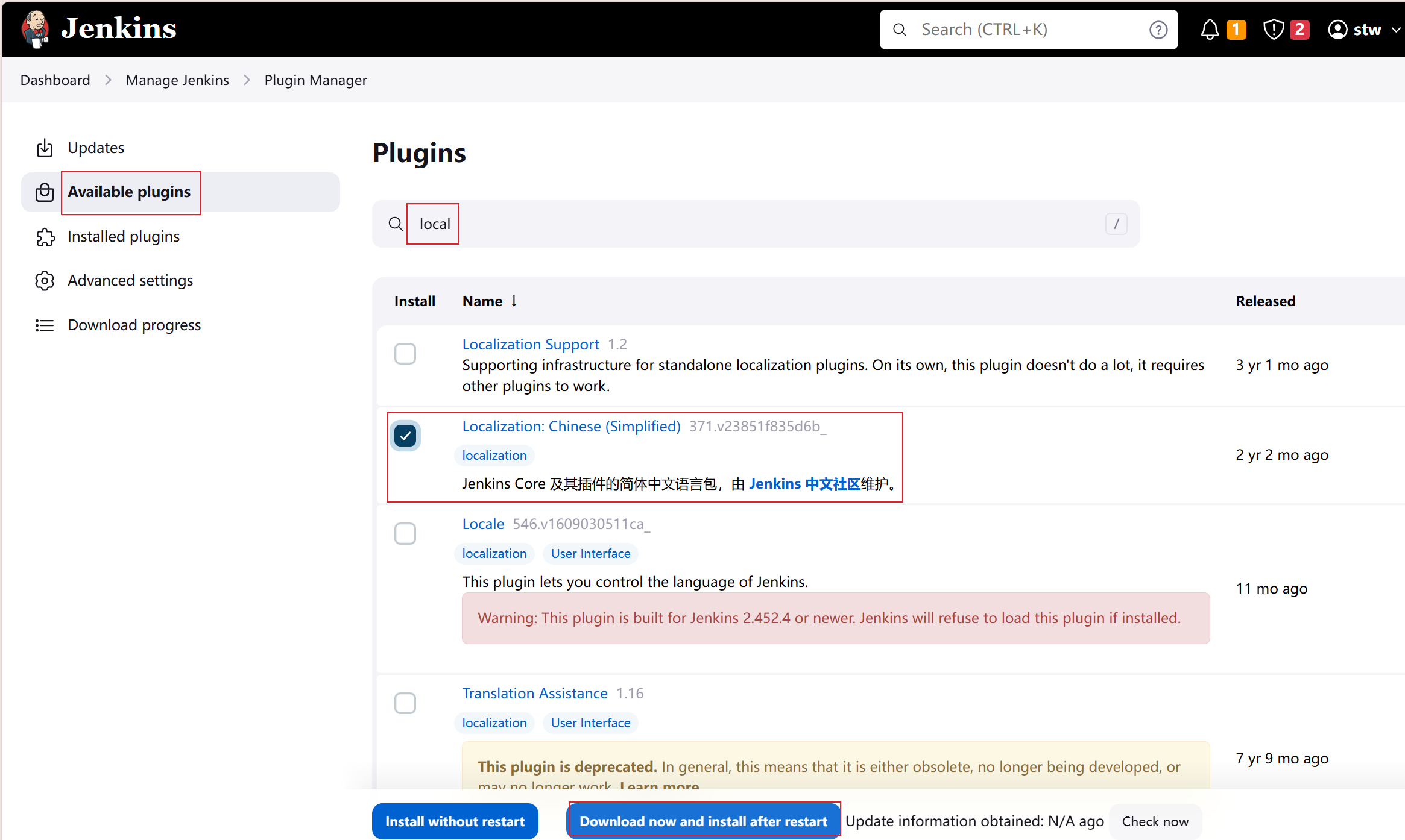 [root@stw tomcat]# cat /root/.jenkins/secrets/initialAdminPassword