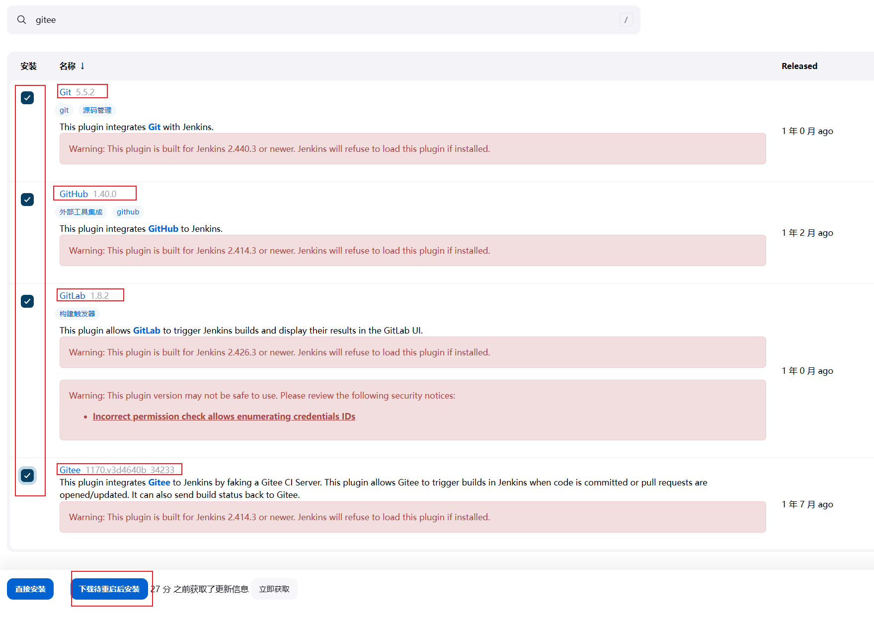 再安装Git GitHub GitLab Gitee插件