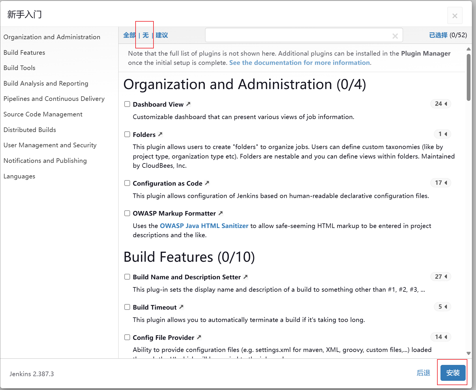 (2)选择无,进行安装,后期需要什么插件就安装什么插件