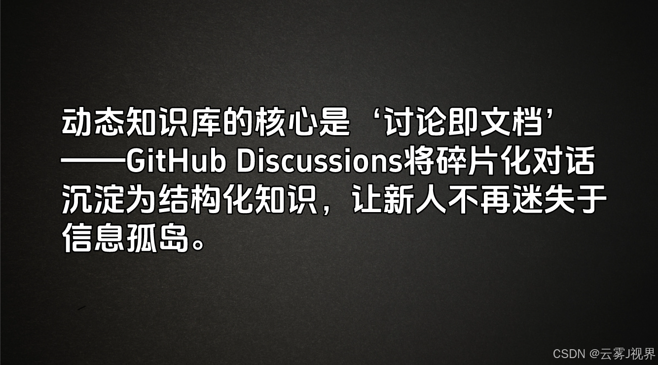 GitHub Discussions与AI技术的融合,正在将开源社区从"代码仓库"进化为"可持续的知识共创网络"。实践表明,这种新模式实现了三大突破: