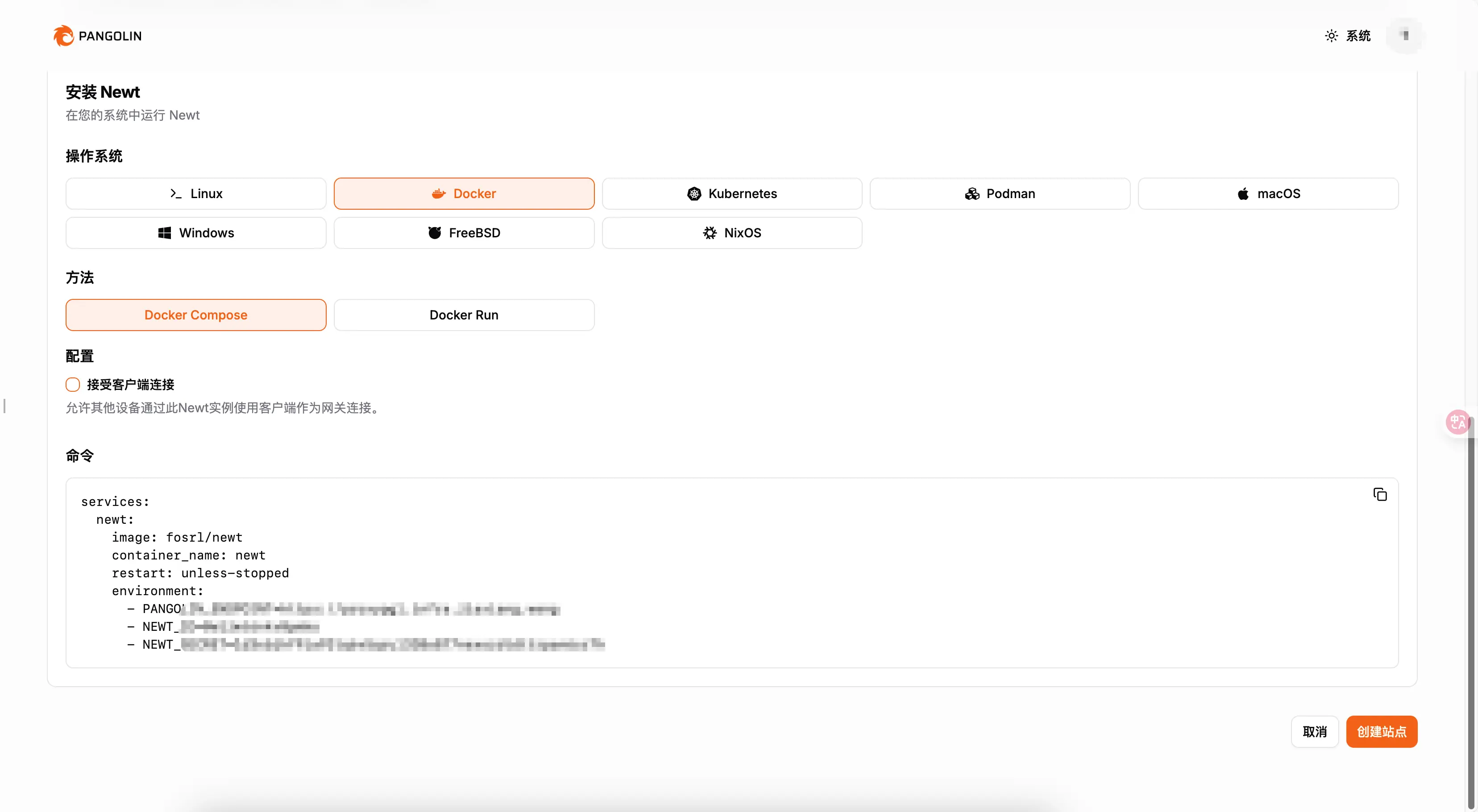 如果你希望完全由Pangolin托管(比如全新的服务器环境,自己懒得配置反代、SSL),可以参考官方快速安装指南,一行命令完成系统部署。