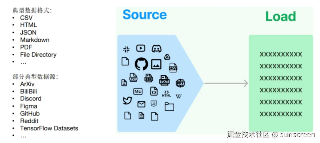 ,例如TXT、CSV、HTML、JSON、Markdown、PDF,甚至YouTube 视频转录等。