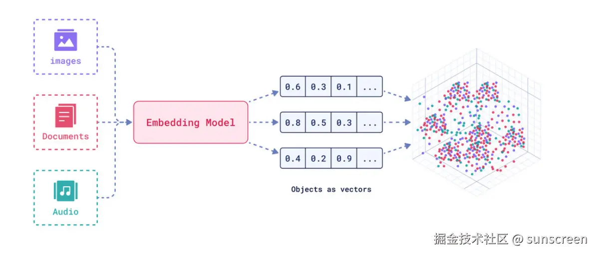 (如Word2Vec)将语义信息编码为固定维度的向量,具体算法细节需后续深入 - 关键特性:相似的词在向量空间中举例相近,例如"猫"和"犬"的向量夹角小于"猫"和"汽车