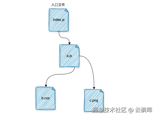 定义的入口文件地址开始,一层层地解析文件。- 先读取入口文件的内容,分析出依赖了哪些文件。