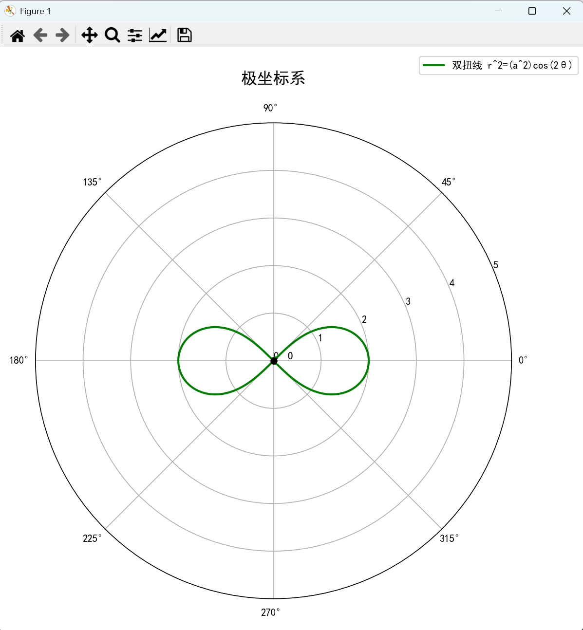 ax.plot(theta[valid_indices], r_positive, 'g-', linewidth=2, label='双扭线 r^2=(a^2)cos(2θ)')