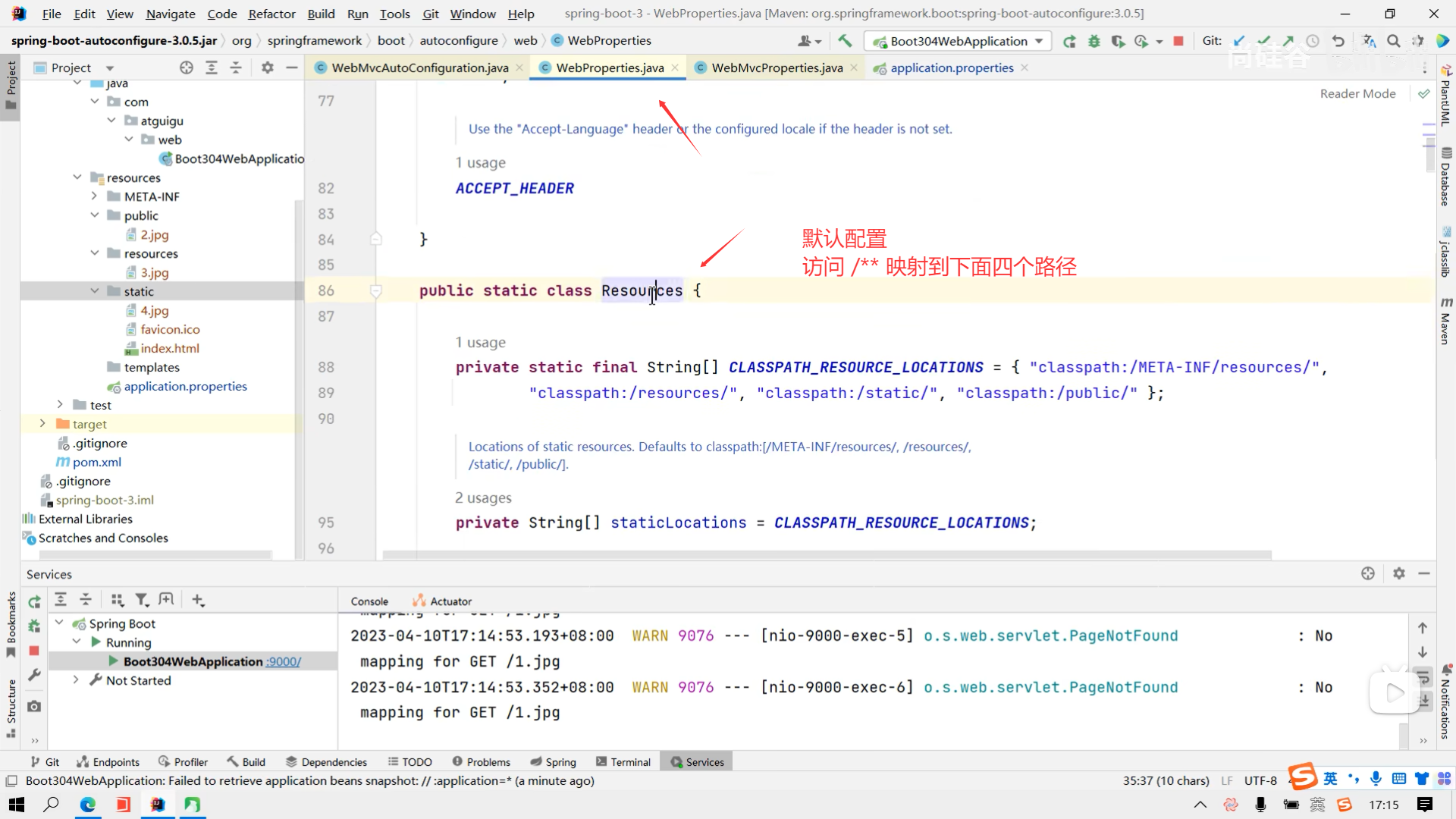 Spring Boot 3零基础教程,WEB 开发 自定义静态资源目录 笔记31