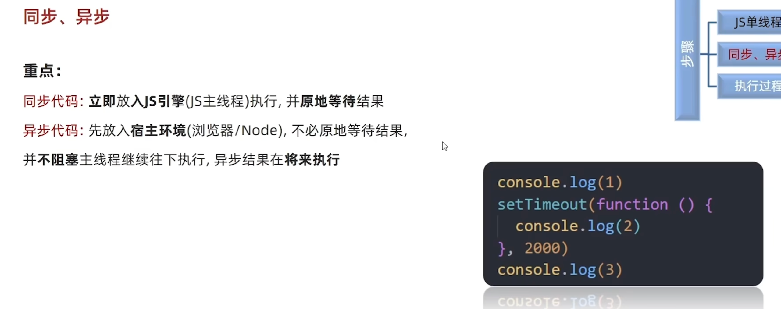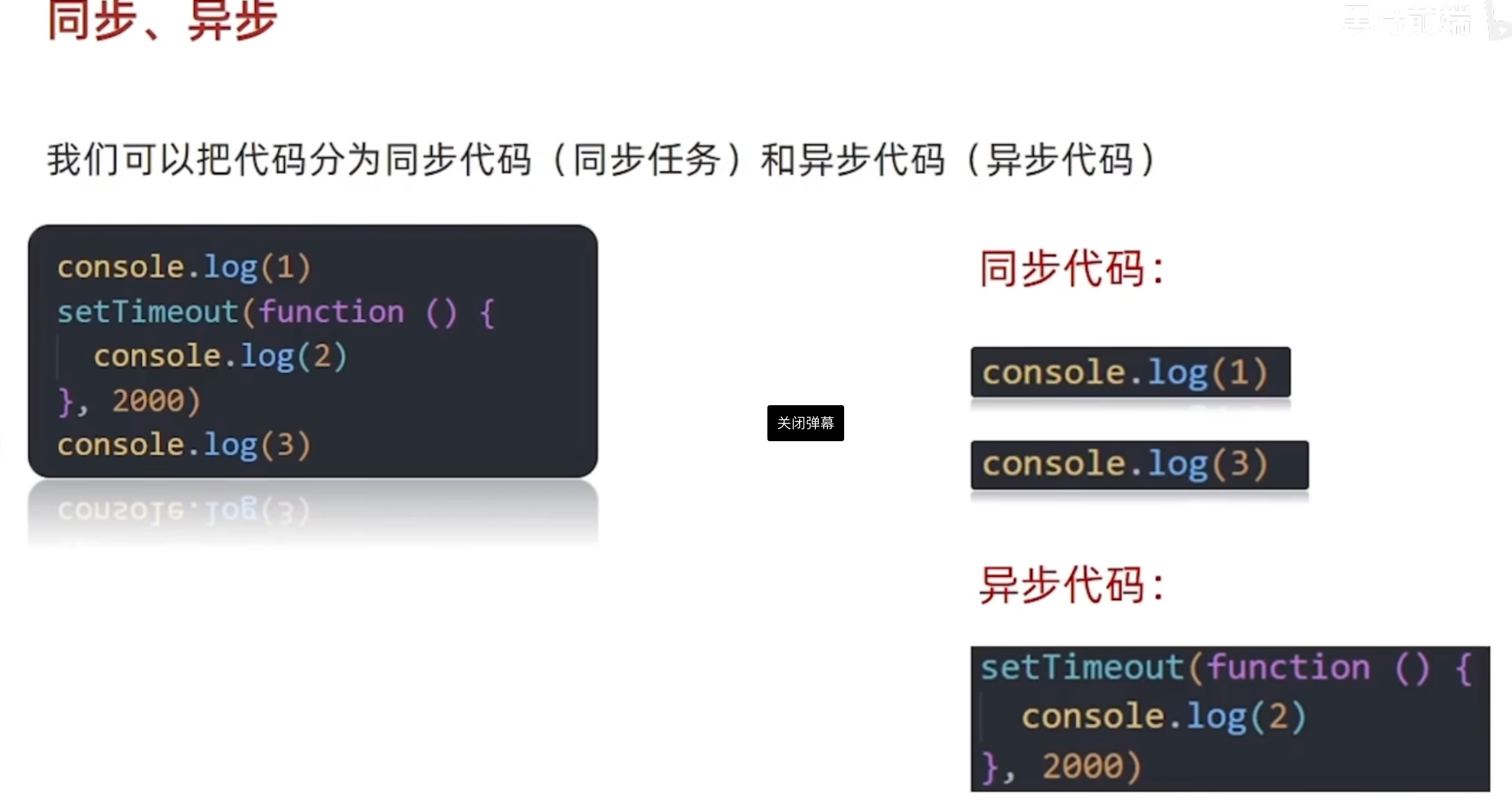 为了防止阻塞代码,把代码分为同步和异步