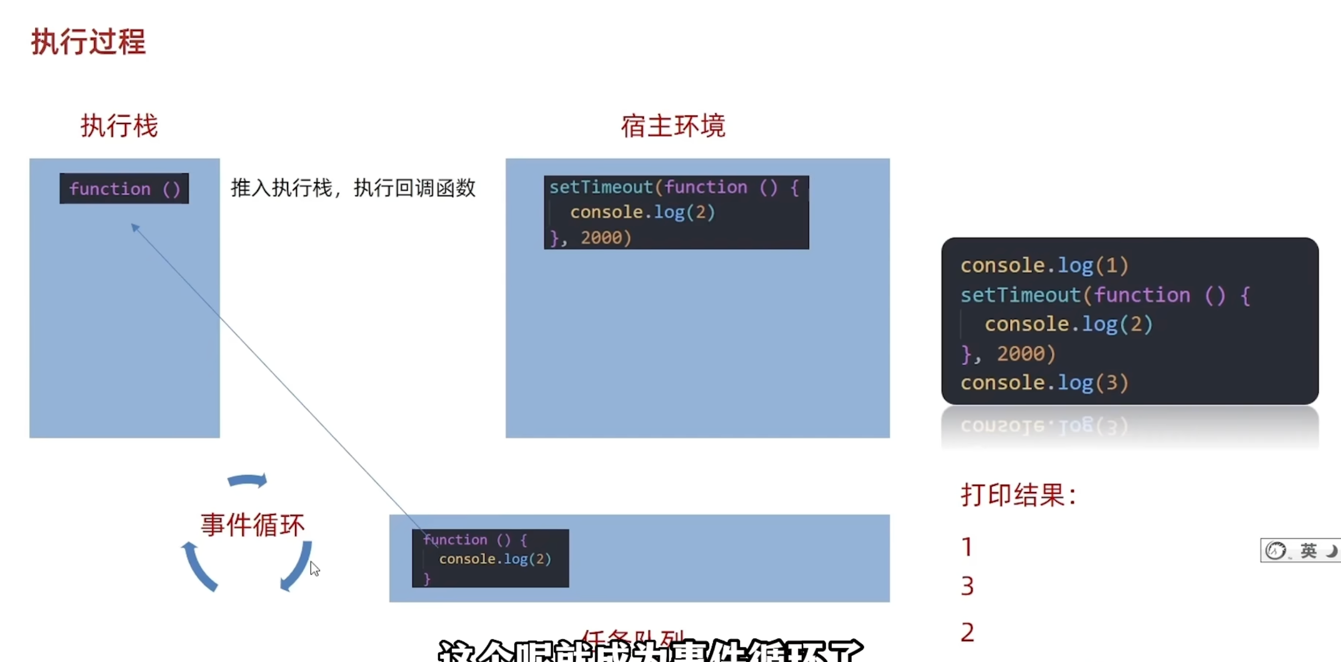 同步代码放到执行栈,异步代码放到宿主环境