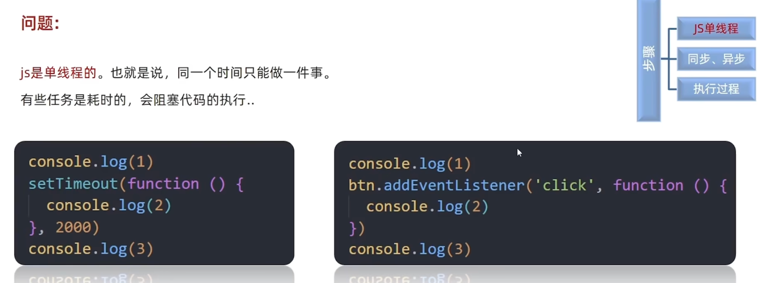 js是一个单线程,会阻塞代码