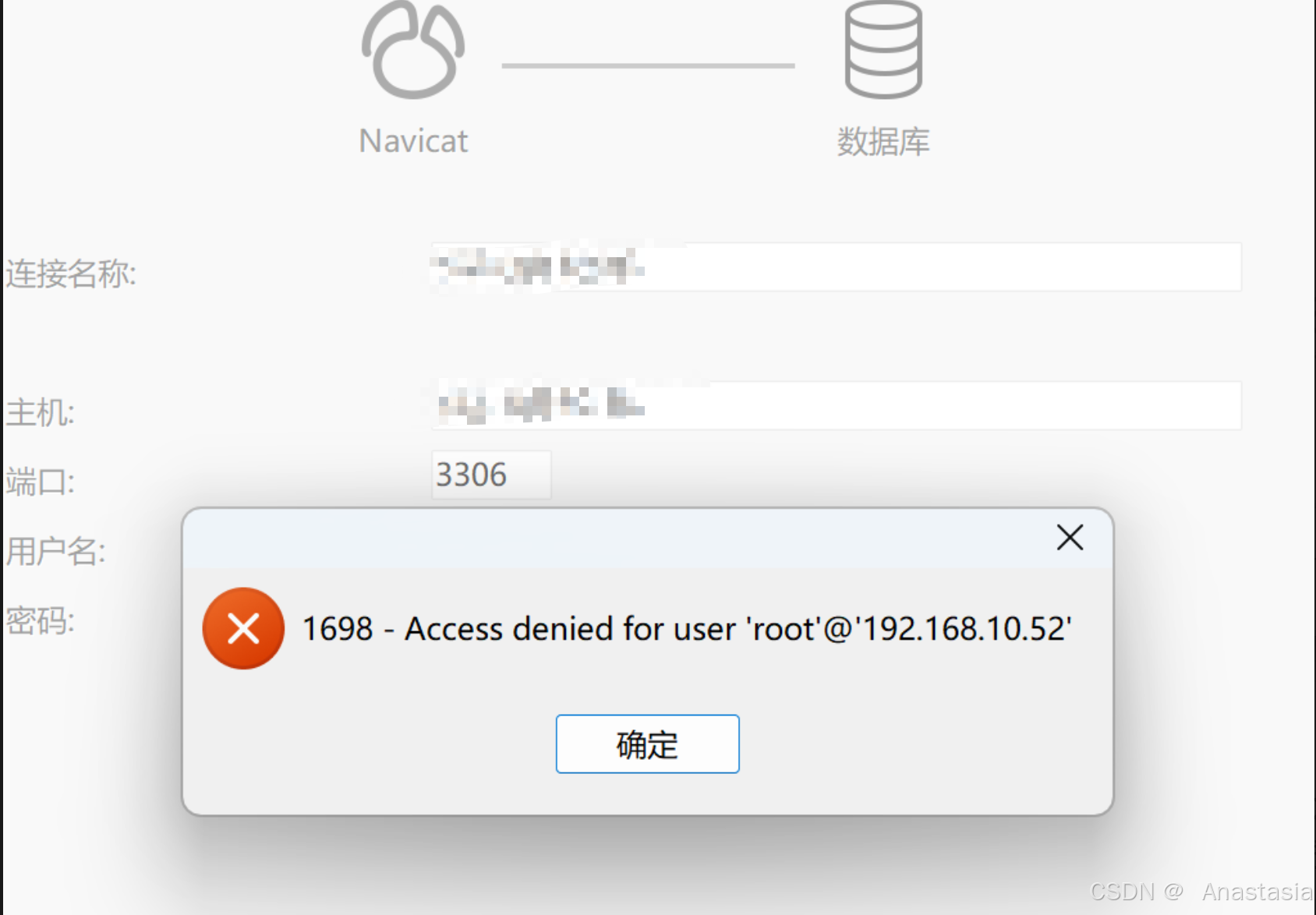 出现 "1698 - Access denied for user 'root'@'192.168.10.52'" 错误,通常是因为 MySQL 的 root 用户默认采用了 "auth_socket" 认证方式,仅允许本地通过 socket 连接,不支持远程密码认证。解决方法如下: