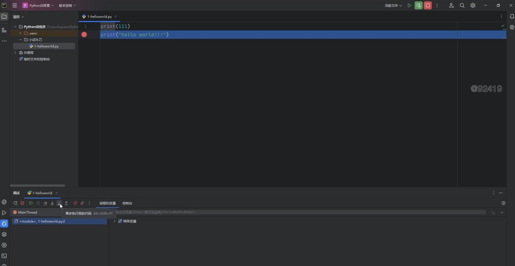 第10步:调试 1-helloworld.py