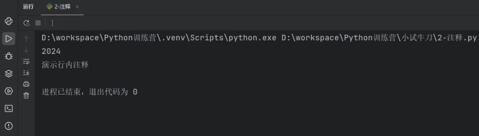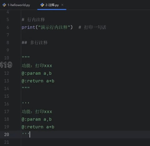 行内注释,代码与注释同在一行。代码右侧要空两格。井号后面又要空一格。