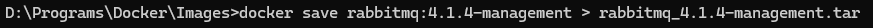 docker save rabbitmq:4.1.4-management > rabbitmq_4.1.4-management.tar