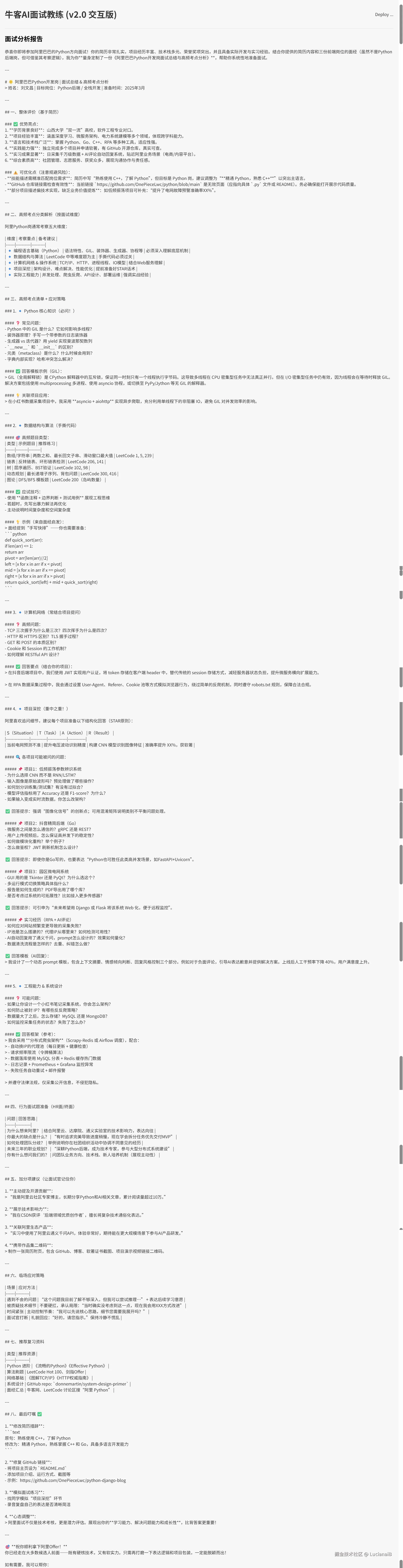 > 🌟 **记住:面试不是考试,而是双向选择。你要让面试官相信------你是那个能一起打仗、解决问题的人。**
