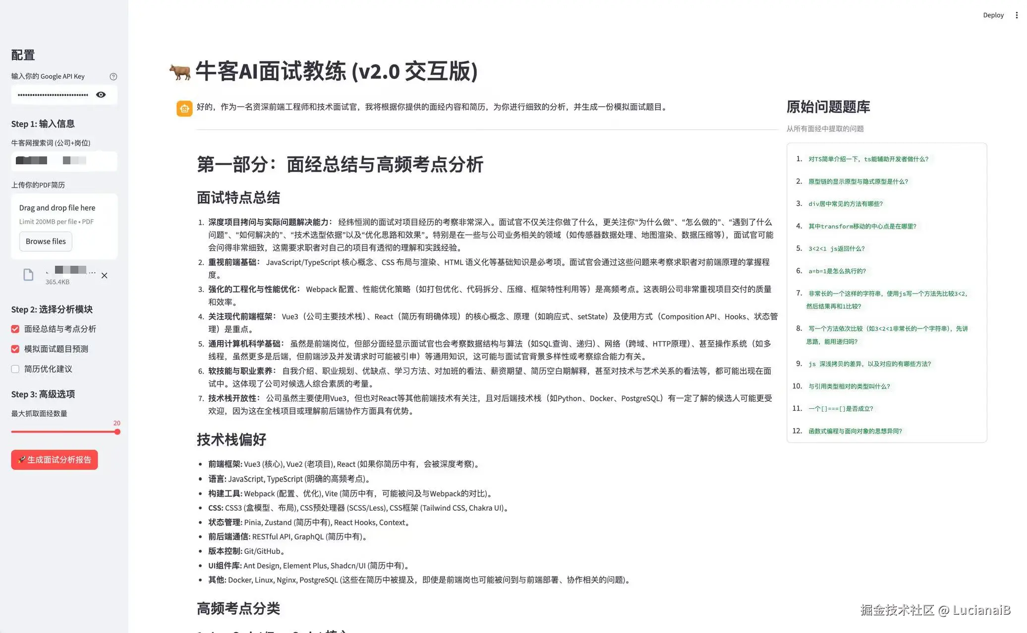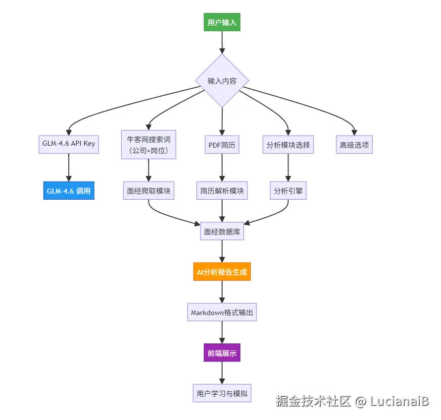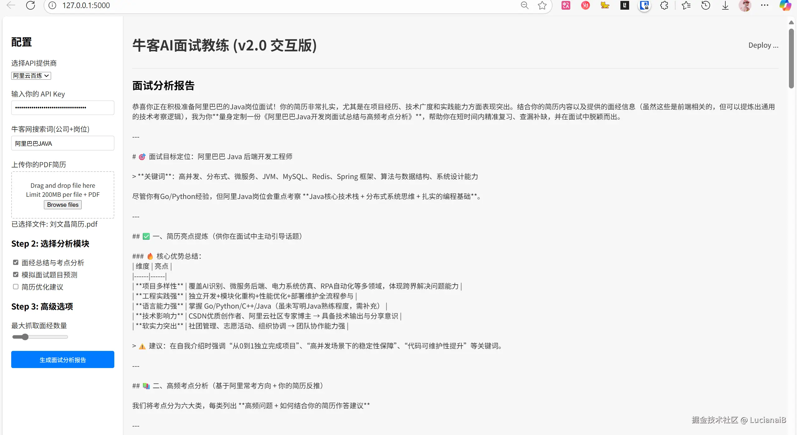 - 根据面经以及选择分析模块,使用AI进行相关面试分析报告