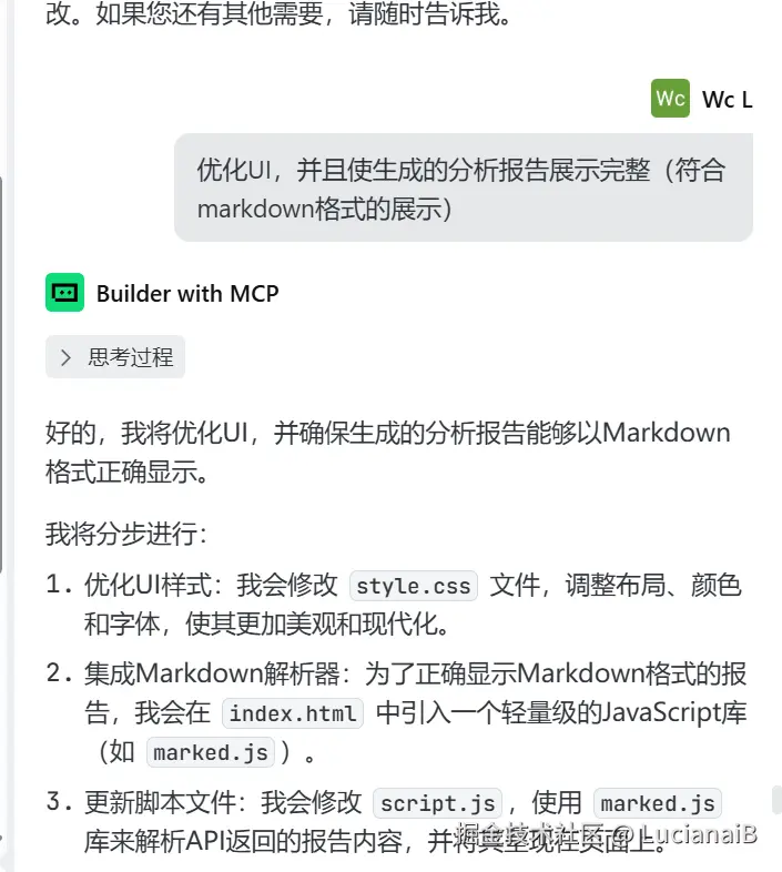 由于分析报告是markdown格式,所以我们让它优化,直接对AI说: