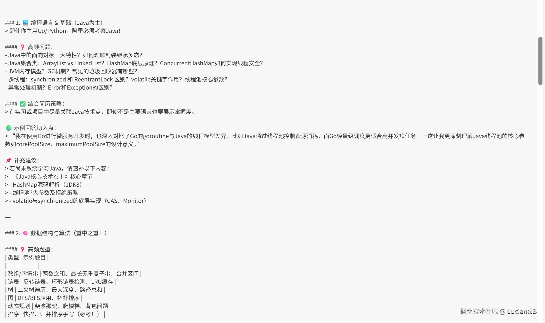 面经总结与考点分析 | 提炼高频问题、技术栈要求、考察重点 | 结构化清单+策略建议 |
