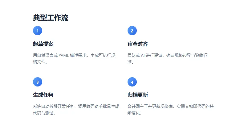 - 先由人类与 AI 共同撰写结构化的需求规范(包括功能描述、输入/输出、边界条件、测试用例等)。