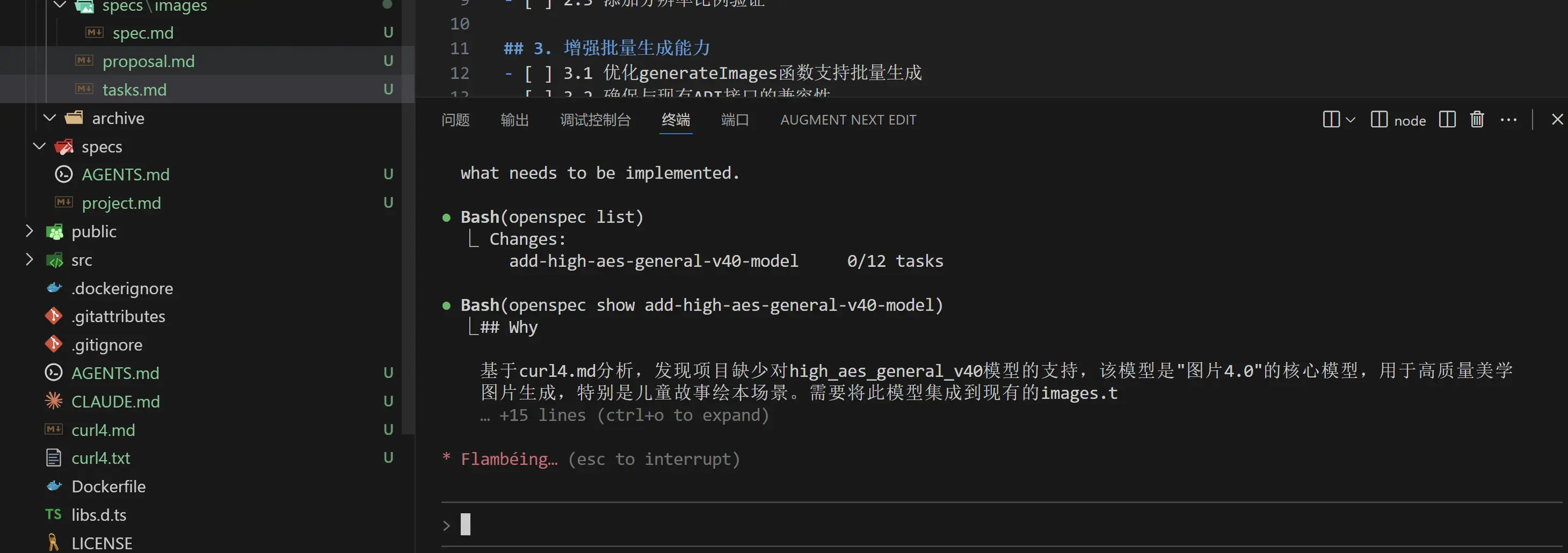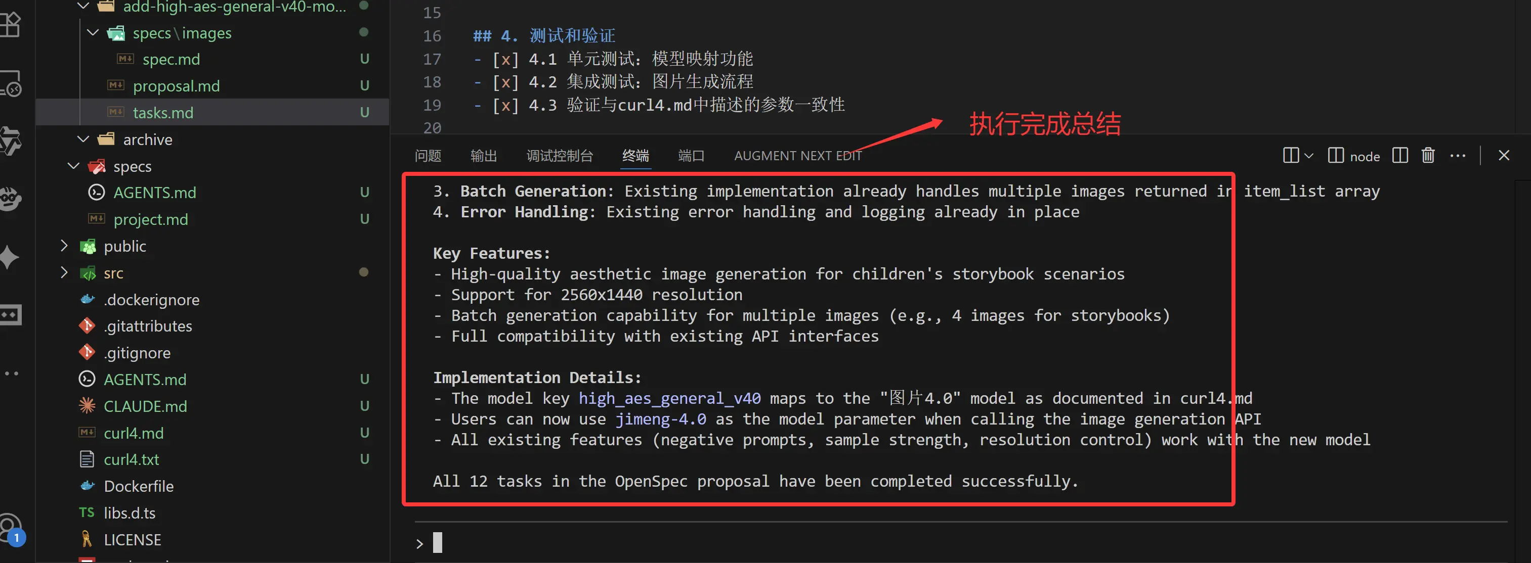 经过一段时间的运行后 tasks.md里面的12个子任务已经执行完成,我们看一下执行后的结果