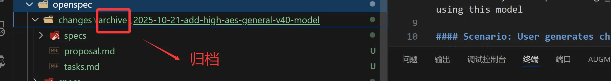 这个时候我们在openspec \changes文件夹下看到新增加的需求已经归档了。
