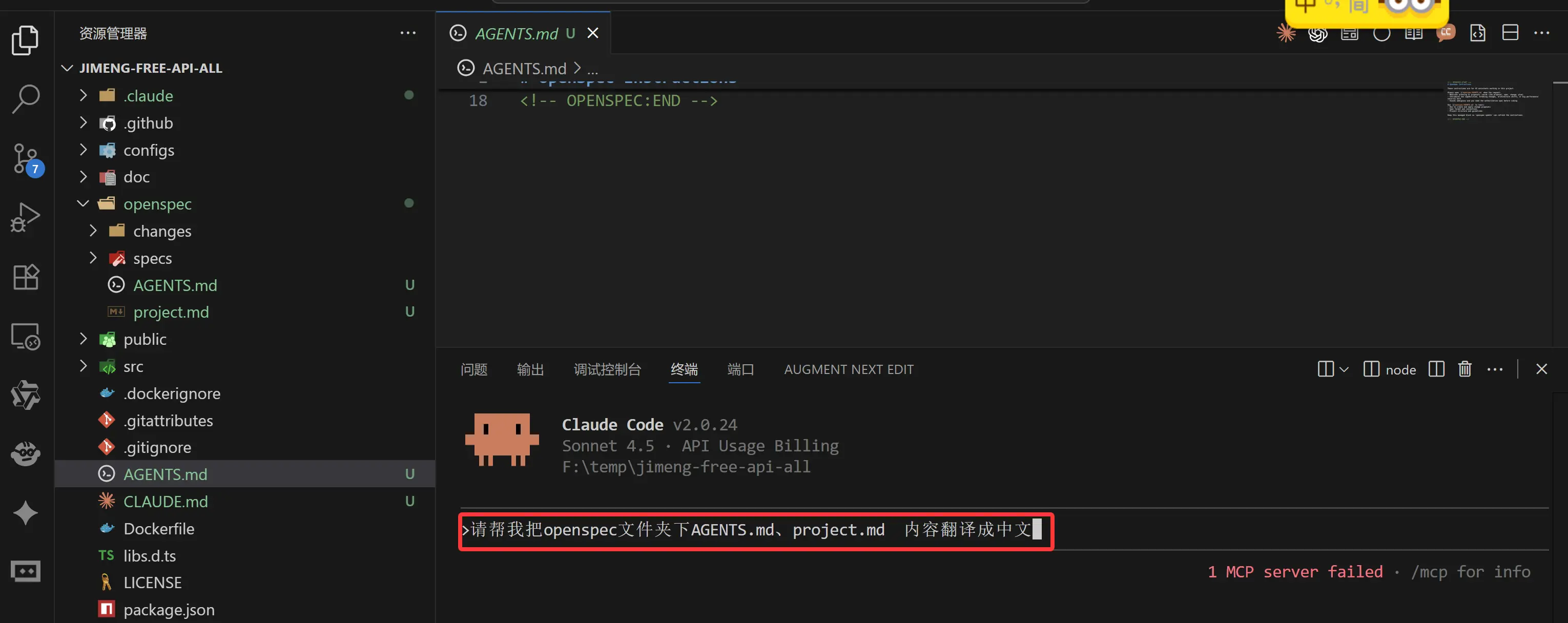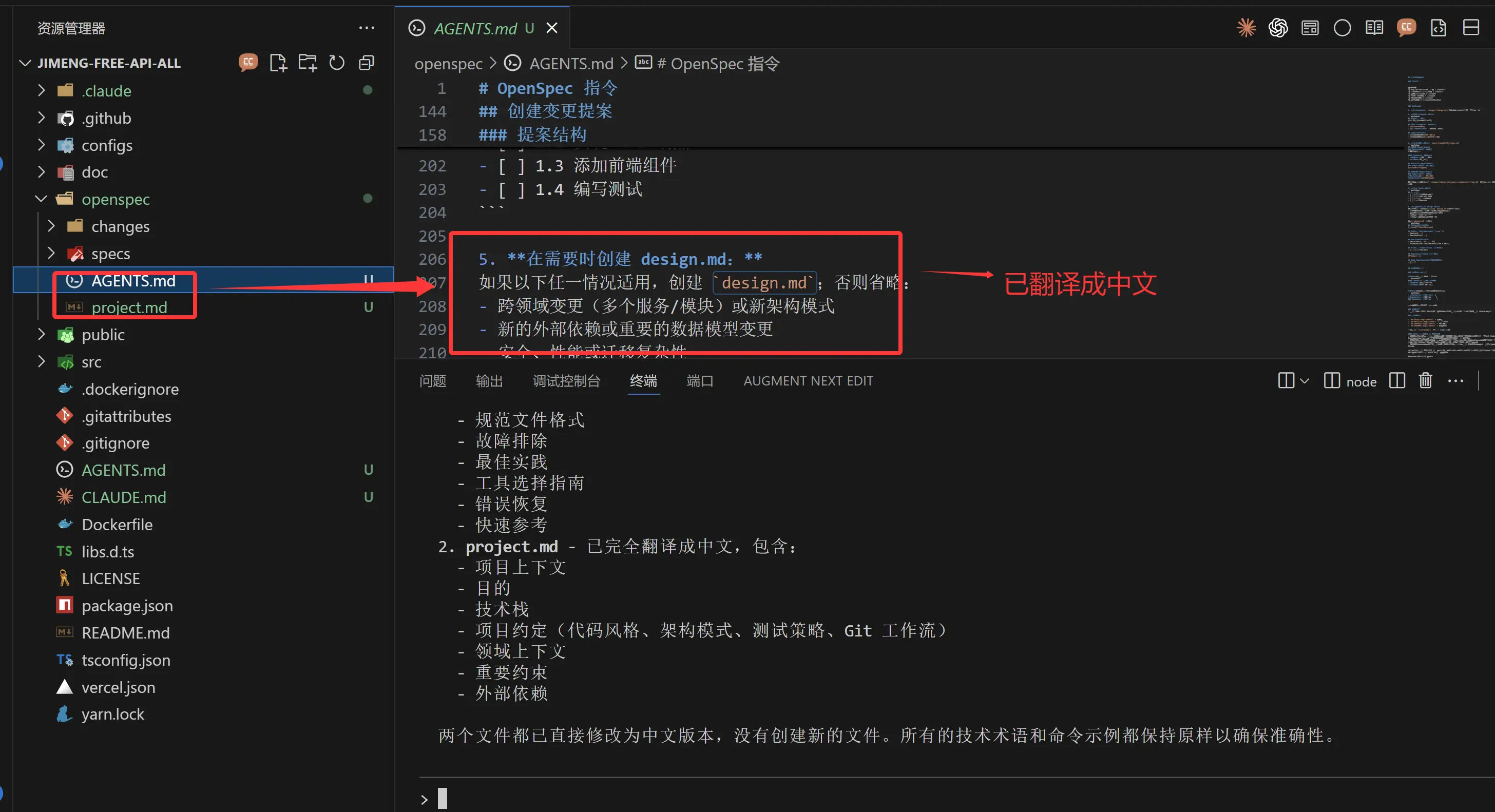 AGENTS.md、project.md 默认的这2个文件是英文的我们把他翻译成中文。
