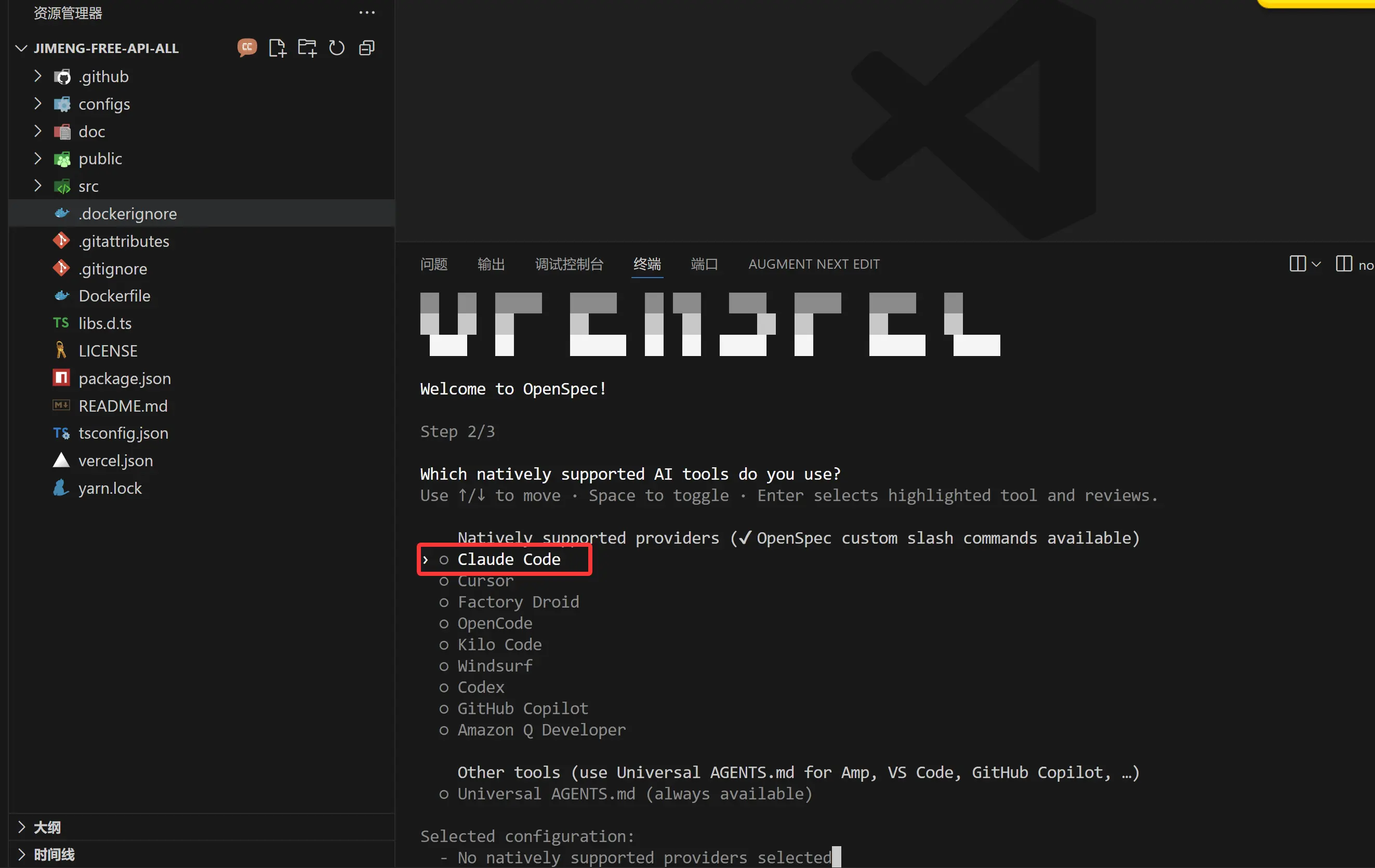 OpenSpec 支持多种开发工具,我这里使用claude code