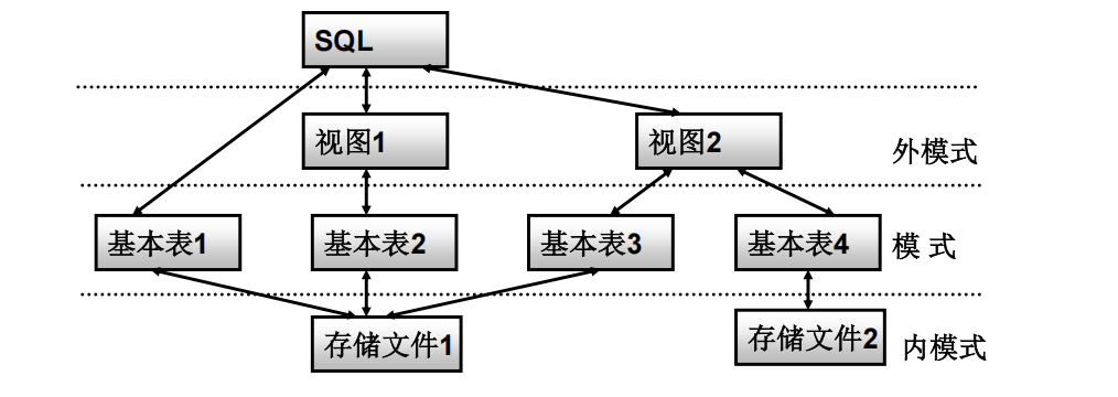 - 三级模式结构 : SQL支持关系数据库的三级模式结构:外模式、模式和内模式。