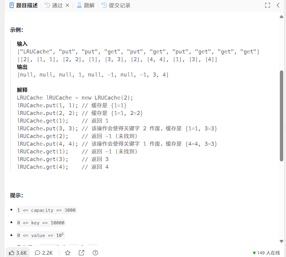 public LRUCache(int capacity) {