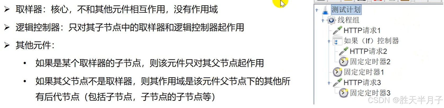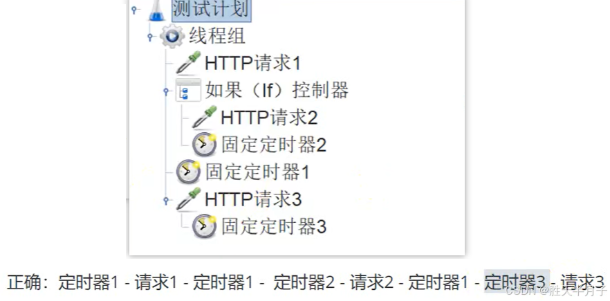 JMeter 的测试计划以 "树形结构" 组织(类似文件夹层级),元件的作用域遵循以下基本原则: