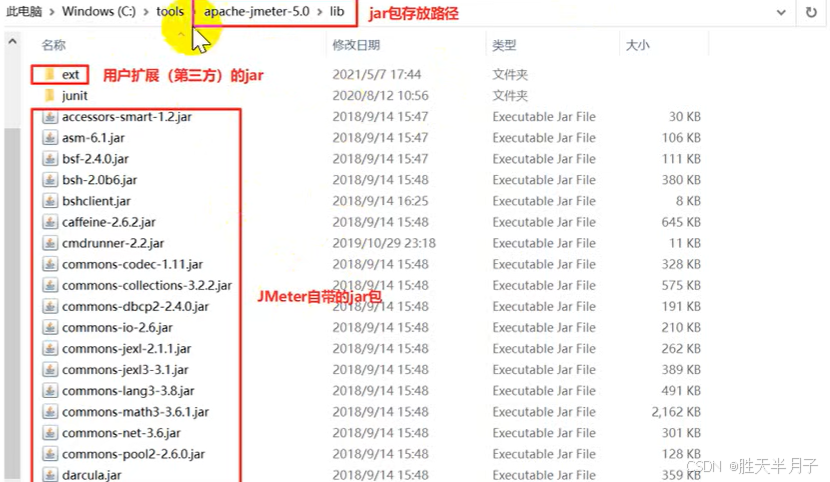 - lib目录:存放JMeter依赖的jar包和用户扩展所依赖的jar包