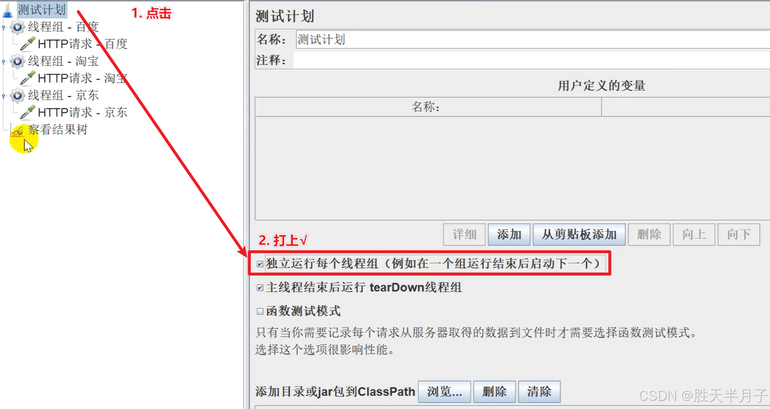 作用域不跨线程组:线程组是独立的 "执行单元",任何元件(包括配置元件、监听器等)都无法影响其他线程组内的元件。