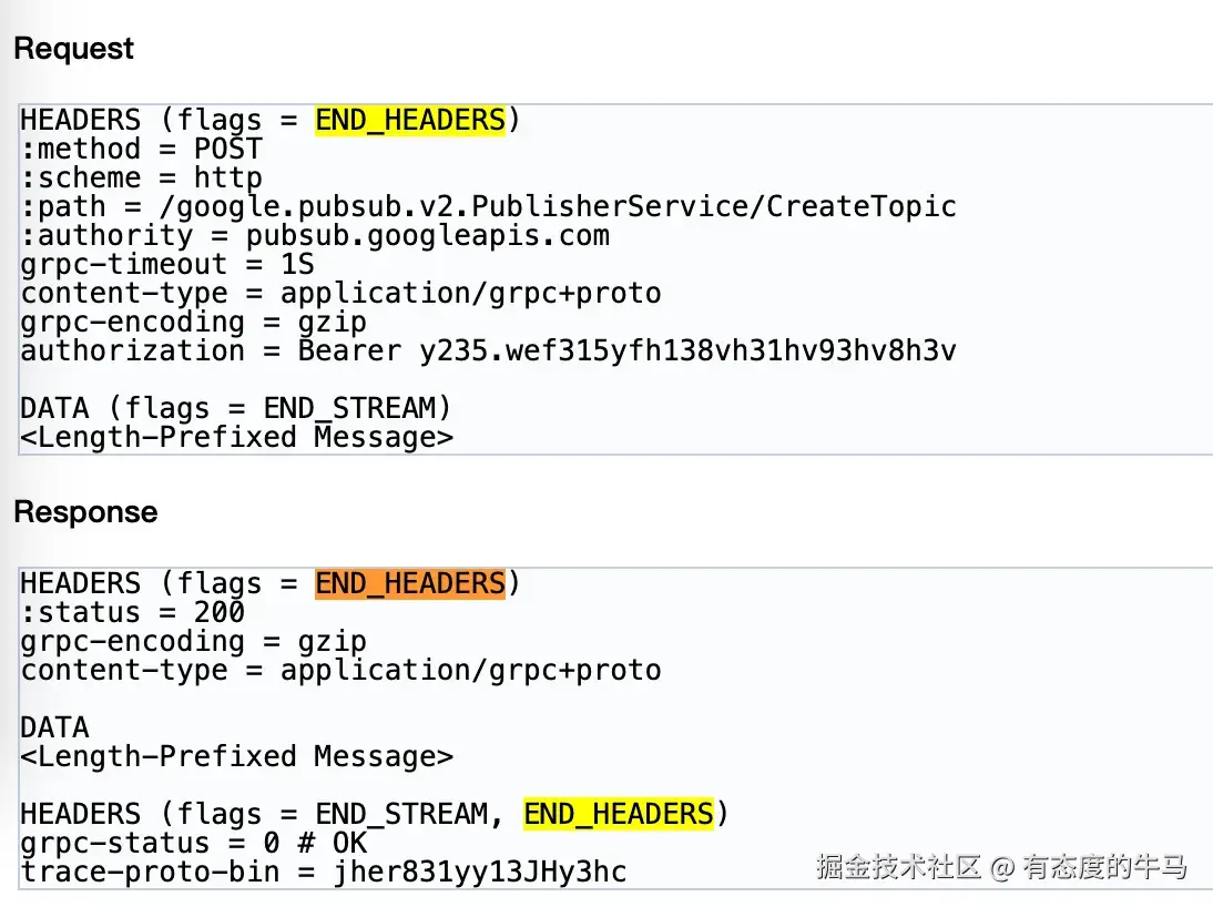 客户端创建grpc通道,内部会创建到服务器的HTTP/2连接,通道创建完后,就可以重用连接来发送多个到服务端的远程调用(多路复用),这些远程调用会映射为HTTP/2中的流, 远程调用中的消息以HTTP/2帧的形式进行发送,帧可能会携带一条gRPC 长度前缀的消息,也可能在 gRPC消息非常大的情况下,一条消息跨多帧。