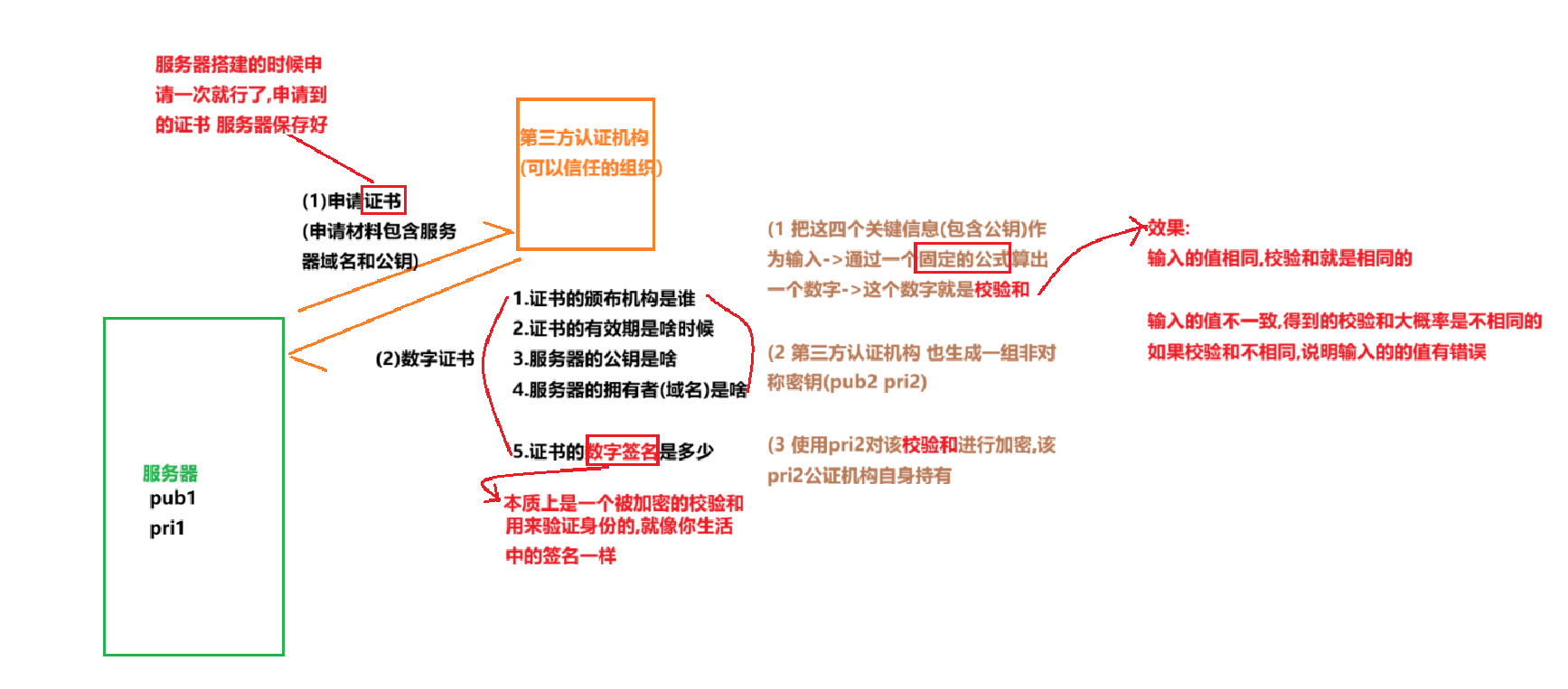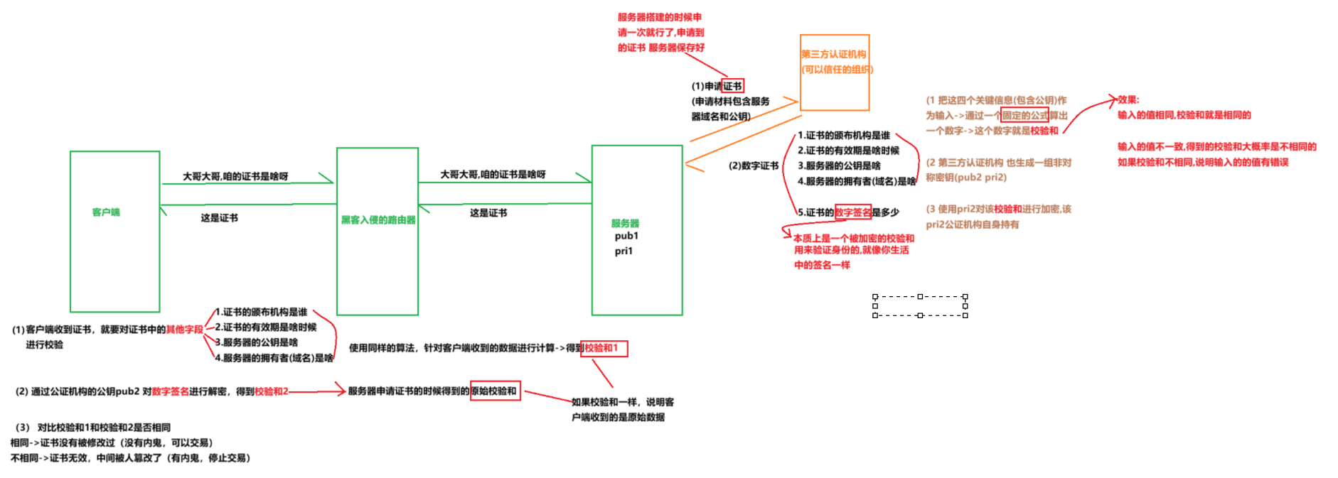 - 整个过程只是为了保证客户端可以验证 服务器的公钥是合法的
