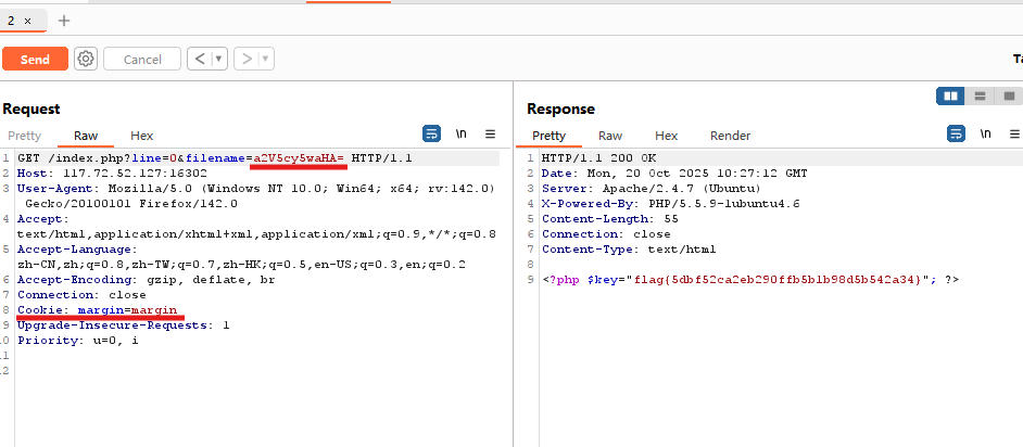 代码中显示,当cookie有margin属性,且值为margin时,并且有file在file_list中时,可以输出file的内容。