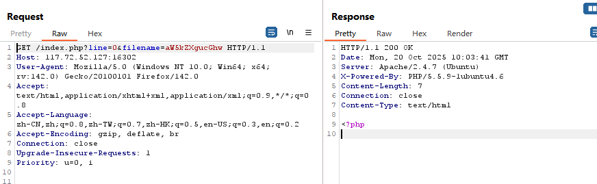 于是,首先把index.php进行base64编码,把编码后的值赋值给filename。