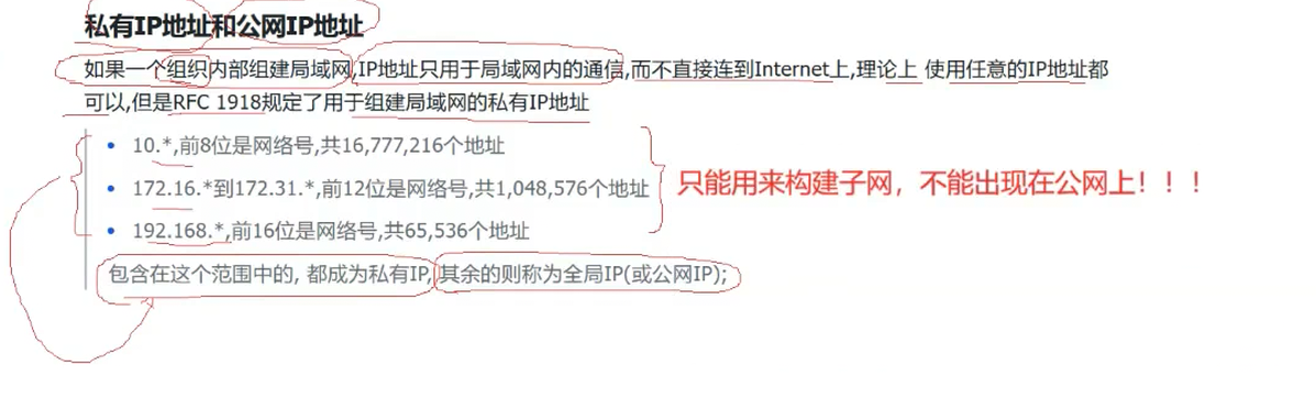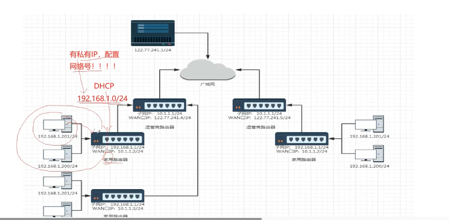 说一个场景在家里面使用Wi-Fi的情况下,我们查我们所用的IP地址的时候通常为私有IP,因为我们的家用路由器组建了一个局域网,当我们链接Wi-Fi的时候为我们分配一个私网IP,此时我们家的这个范围其实就相当于一个子网,但是我们要如何访问这个局域网外部的数据呢,通过路由器,虽然我们的各种设备是链接在这个局域网内部的,但是路由器是链接公网的或者可以说是链接外部的网的(路由器通常有两个IP地址,一个在这个局域网内部的iP地址(子网IP),一个是链接外部的IP地址,通过链接的是运营商的路由器(WAN口IP),我们把请求通过路由器传递出去获取数据。同时运营商的路由器的子网IP可能又是一个子网内部的IP地址,WAN口IP可能又是一个更大的子网内部的IP,以此的类推下去,到最后的一个运营商的WAN口IP链接的是公网IP。