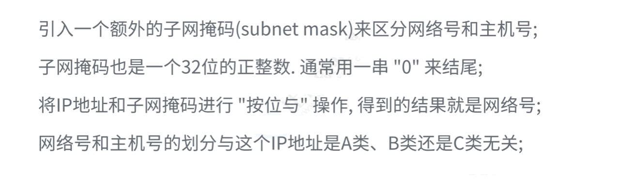 怎么理解呢,假如我申请了一个A类网络,但是我又没有那么多的主机,所以我设置一个子网掩码,这个子网掩码的前12位1,然后和这个A类网络进行按位与操作,也就是说我把这个A类网络的前12位当成一个网络号,后面的当成主机号,其实就是对A类网络进行又进一步的划分,这样提高了A类网络的利用率。