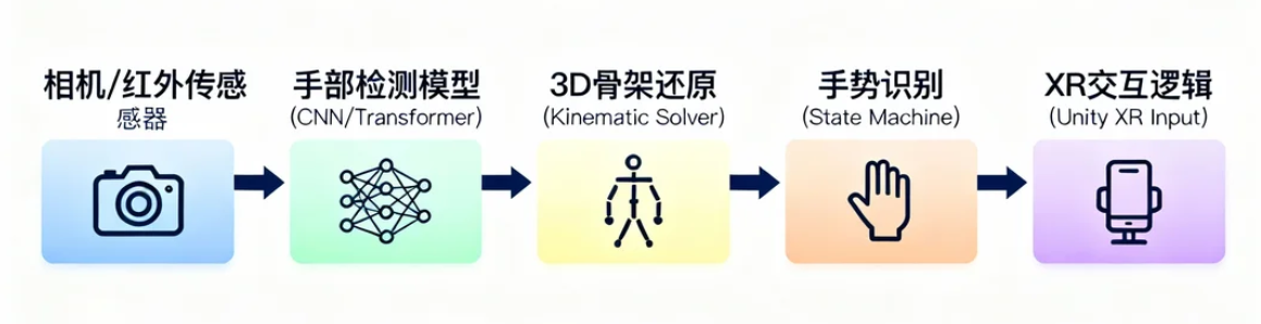 - 摄像头采集:由设备前置摄像头或Leap Motion等外部模块捕捉手部影像。