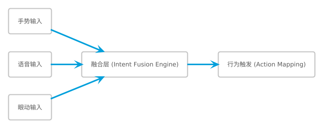 多模态融合(Multimodal Fusion)是将手势、语音、视线、头部姿态等多种输入信号综合判断用户意图的技术。
