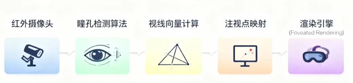 眼动追踪功能能够在应用中实时监测并定位用户的注视点。其核心是一项传感器技术,通过捕捉眼球运动,将用户的视线变化转化为数据流,输出瞳距、双目注视向量及注视点等信息,作为设备的输入信号。