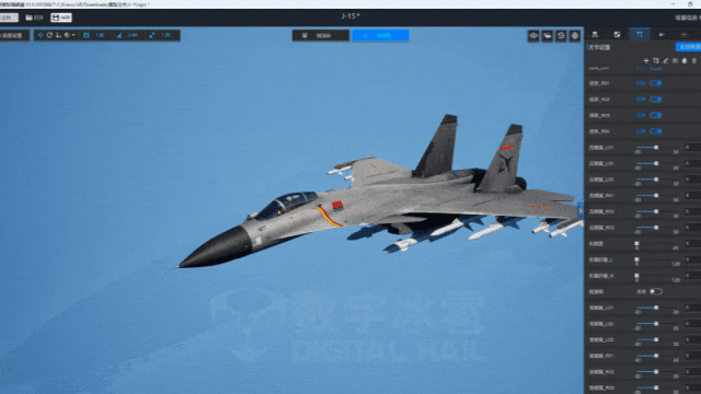 装备模型库覆盖全球主流海、陆、空、天装备,且全部采用高精度建模,具备规范的结构层级与数据驱动关节定义。可以直接选用这些"开箱即用"的模型,极大缩短了搭建数字战场的时间。同时,模型编辑器支持深度二次编辑,用户可以调整涂装、修改细节、增删附件(如为战机挂载不同弹药),甚至定制特殊的动作序列,满足从标准推演到特定展示的各类需求。