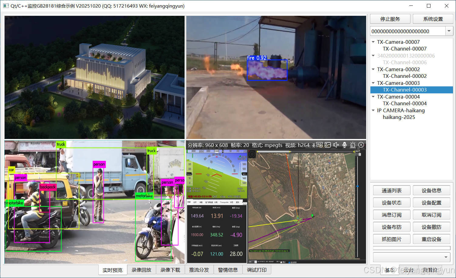 - 支持几千路国标消息交互并发,实时视频流支持64路同时显示,可以拓展更多路数。