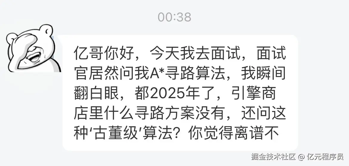 他哭笑不得 :"都2025 年了,引擎商店里什么寻路方案 没有,还问这种'古董级'算法?"