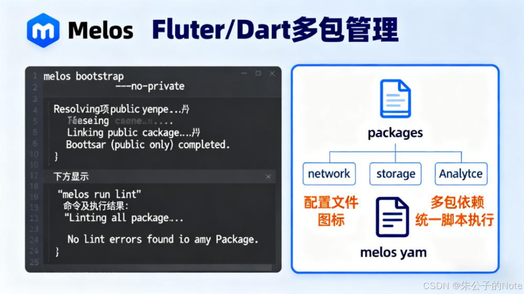 "在Flutter的世界里,Melos就像一位经验丰富的交响乐指挥家,让每个独立的代码包都能和谐共鸣。它用优雅的配置取代了繁琐的操作,用统一的标准消弭了团队的摩擦,让复杂的monorepo项目管理变得像演奏一曲优美的交响乐。"